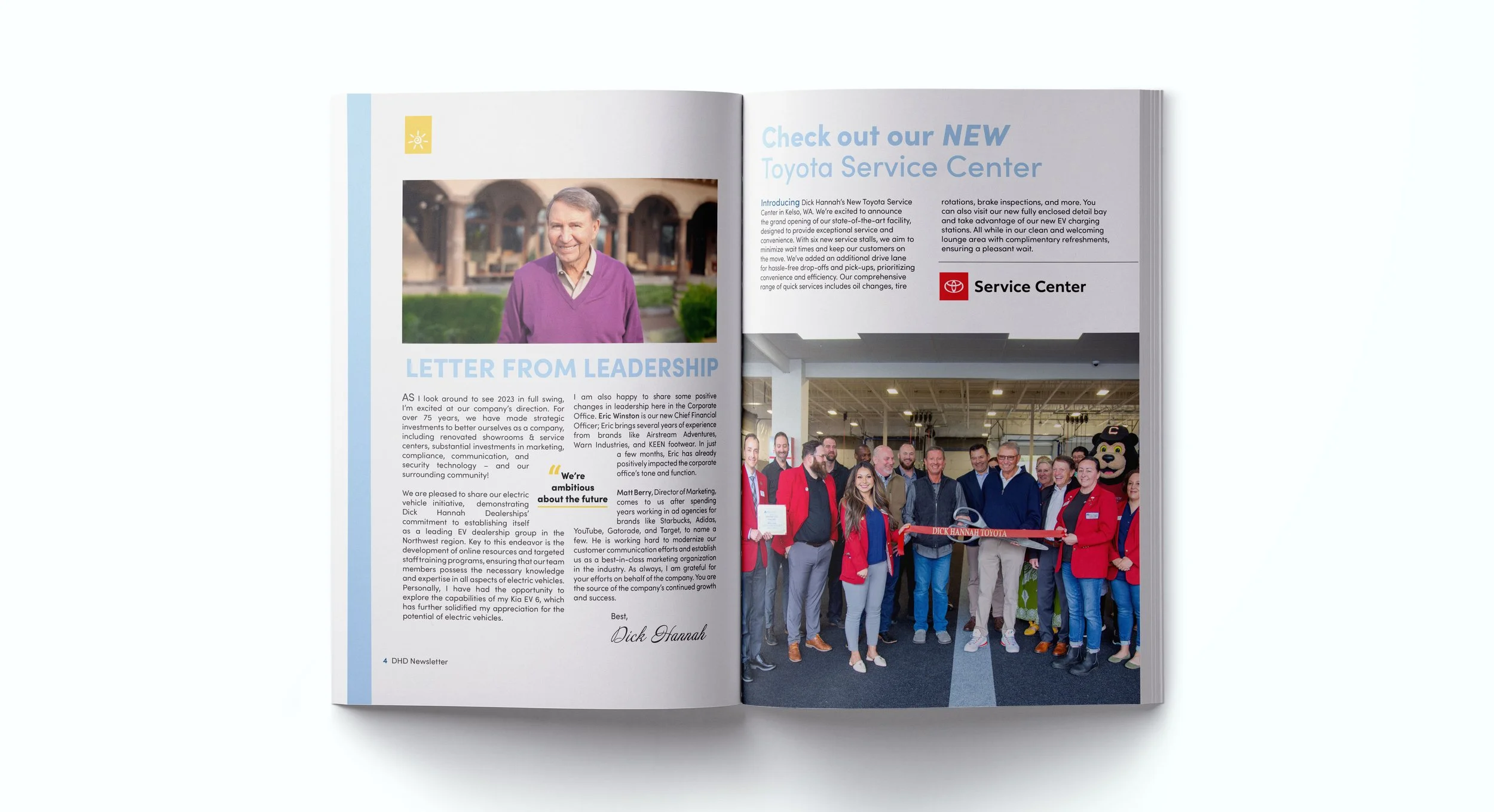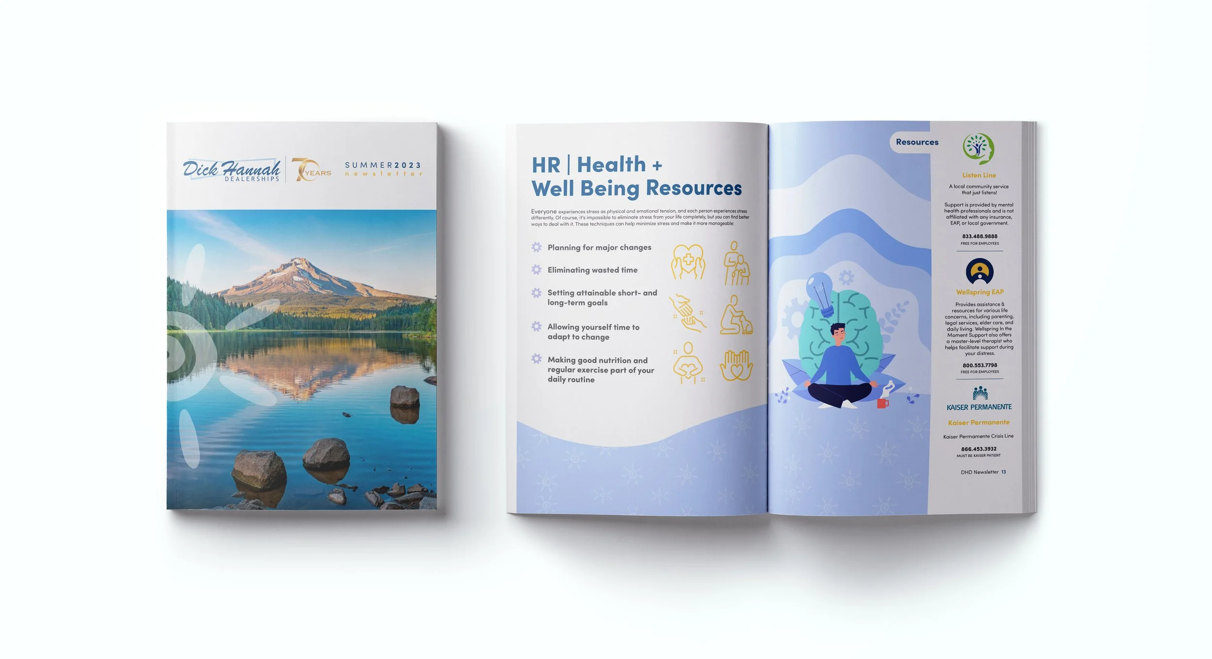 A 26 page newsletter sent out internally, made to inform current employees of business news and upcoming events and awards.